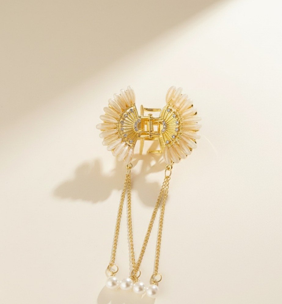 If you want a hairpiece that’s both stylish and practical, the Golden Sunflower Pearl Tassel Hair Claw is the perfect choice to brighten up any outfit with effortless elegance.