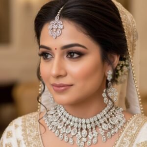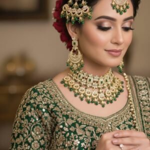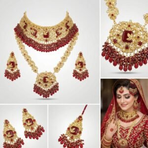 Whether it’s the Nikkah, Barat, or Mehndi ceremony, this jewelry looks incredibly beautiful with all types of bridal attire. This set is ideal for brides seeking a luxury and traditional look at an affordable price point. Wearing this, you will stand out and look most unique on the biggest day of your life.